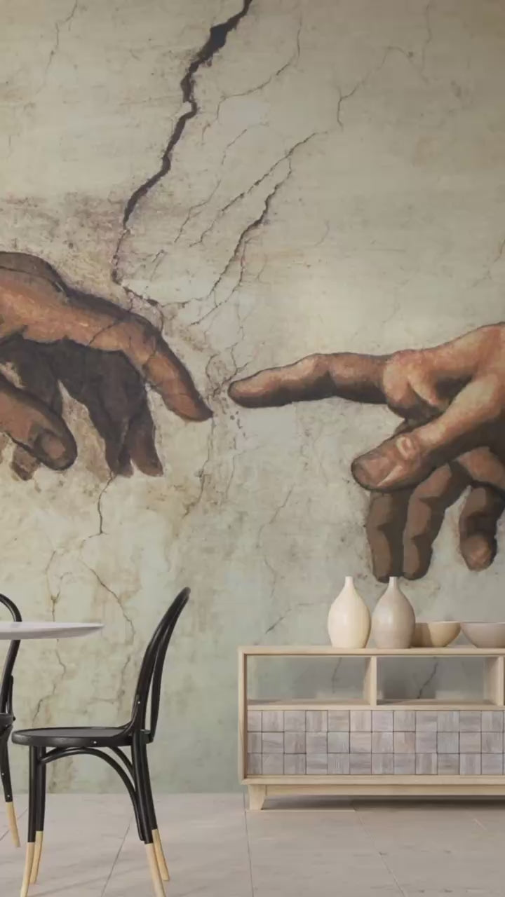 Artistic Vintage-Style Peel ana Stick Wallpaper for Living Room and Bedroom – "Michelangelo: The Gesture of Creation"